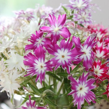 Phlox Twinkles produces compact, star-shaped blooms in bright and pastel shades, creating a twinkling effect. It thrives in cool to mild weather, full sunlight to partial shade, and grows well in 8-10 inch pots, borders, or rock gardens. This low-maintenance, bushy plant is perfect for ground cover or colorful garden edges.